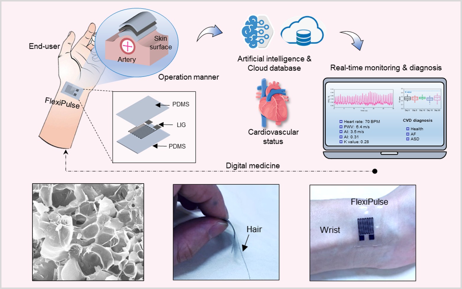 **Zhiqiang Ma**,* Haojun Hua, Changxin You, Zhihao Ma, Wang Guo, Xiao Yang, Shirong Qiu, Ni Zhao, Yuanting Zhang, Derek Ho, Bryan P. Yan, Bee Luan Khoo*. FlexiPulse: A Machine Learning-Enabled Flexible Pulse Sensor for Cardiovascular Diseases Diagnostics Cell Reports Physical Science 2023