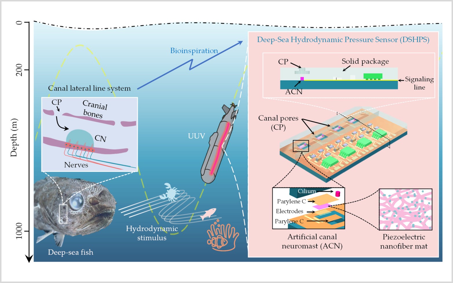 Xiaohe Hu, **Zhiqiang Ma**,* Zheng Gong, Fuqun Zhao, Sheng Guo, Deyuan Zhang, Yonggang Jiang. A Highly Sensitive Deep-Sea Hydrodynamic Pressure Sensor Inspired by Fish Lateral Line Biomimetics 2024