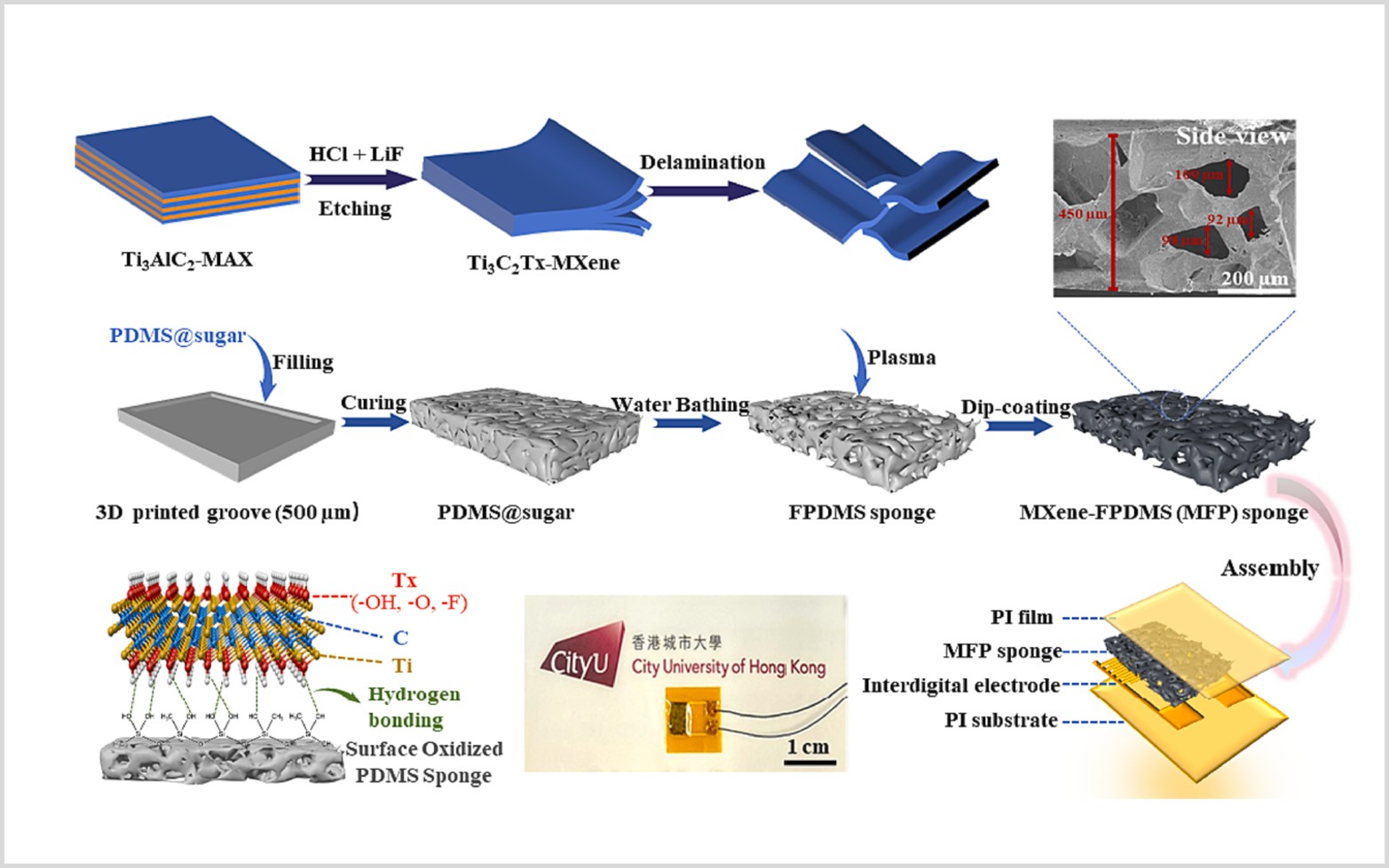 Wang Guo, **Zhiqiang Ma**,* Zhou Chen, Haojun Hua, Dong Wang, Mohamed Elhousseini Hilal,* Yatian Fu, Pengyi Lu, Jian Lu, Yuanting Zhang, Derek Ho*, Bee Luan Khoo*. Ultrathin, high porosity, soft Ti3C2Tx MXene sponge structure for deep learning-assisted biophysiological pressure sensor Chemical Engineering Journal 2024