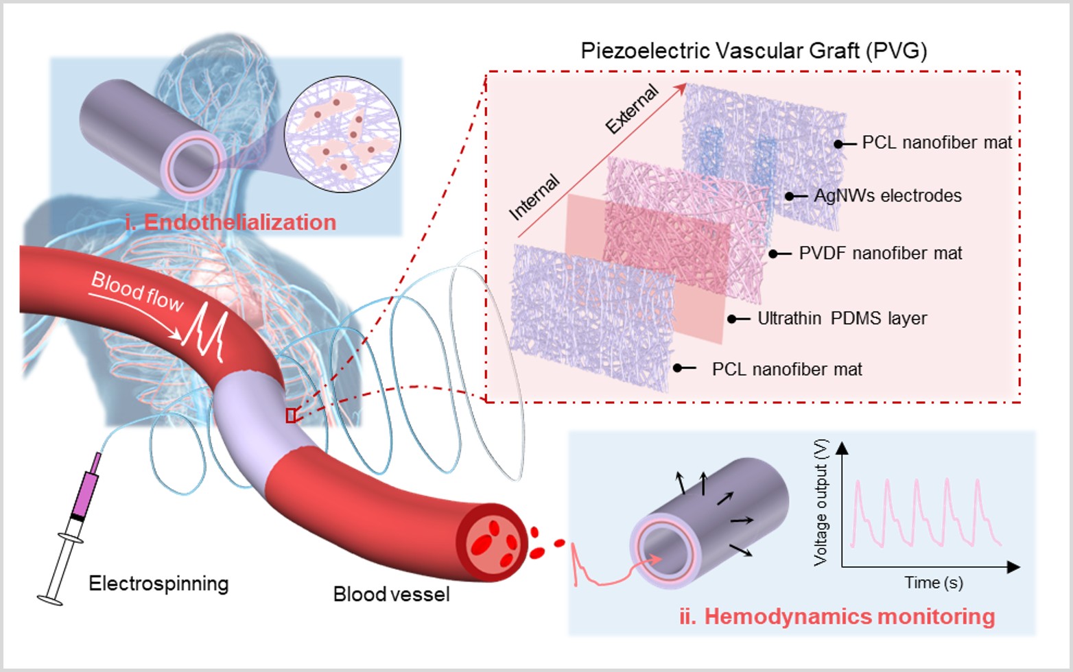 **Zhiqiang Ma**†,*, Weibin Jia†, Jing Zhang, Xingdao He, Shiyuan Liu, Mohamed Elhousseini Hilal, Xiang Zhou, Zhengbao Yang, Zonggang Chen, Peng Shi, Bee Luan Khoo*. Integrated Piezoelectric Vascular Graft for Continuous Real-Time Hemodynamics Monitoring Advanced Functional Materials 2024
