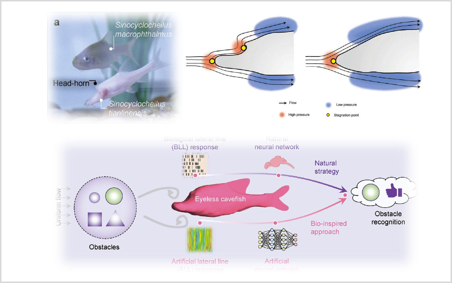 **Zhiqiang Ma**,† Zheng Gong,† Yonggang Jiang,* Peng Wu, Changxin You, Zihao Dong, Hongchao Cao, Zhen Yang, Yahui Zhao, Huawei Chen, Deyuan Zhang. Head Horn Enhances Hydrodynamic Perception in Eyeless Cavefish Advanced Science 2024